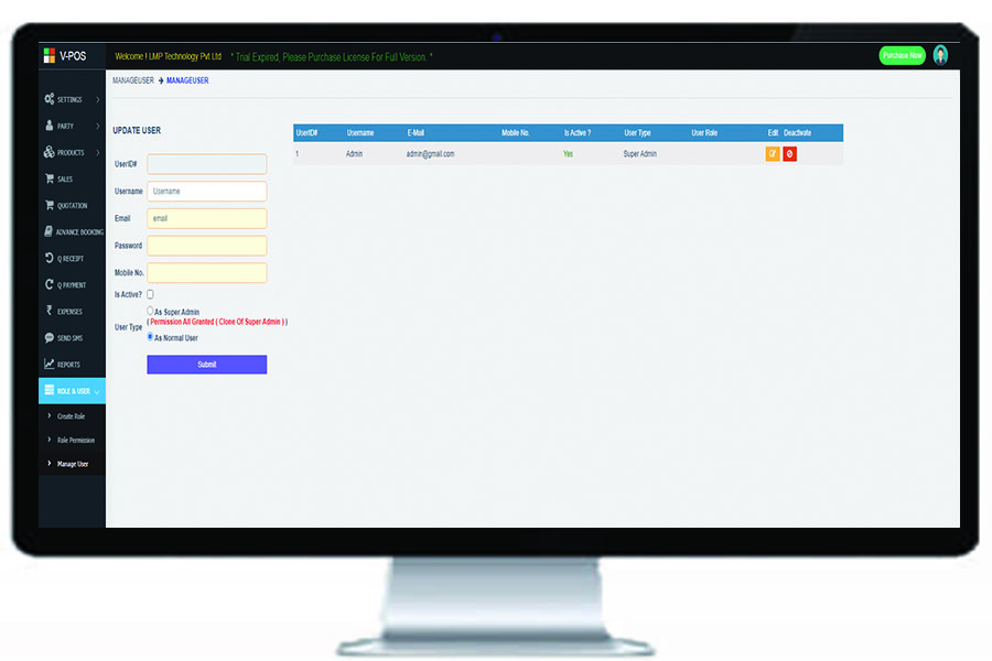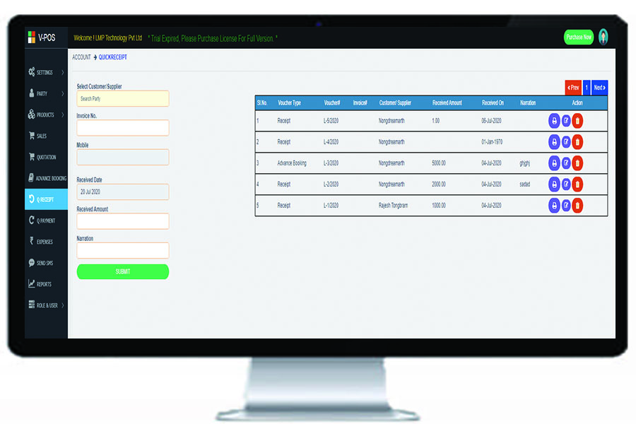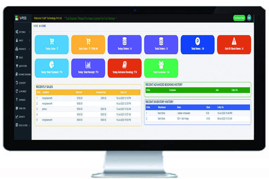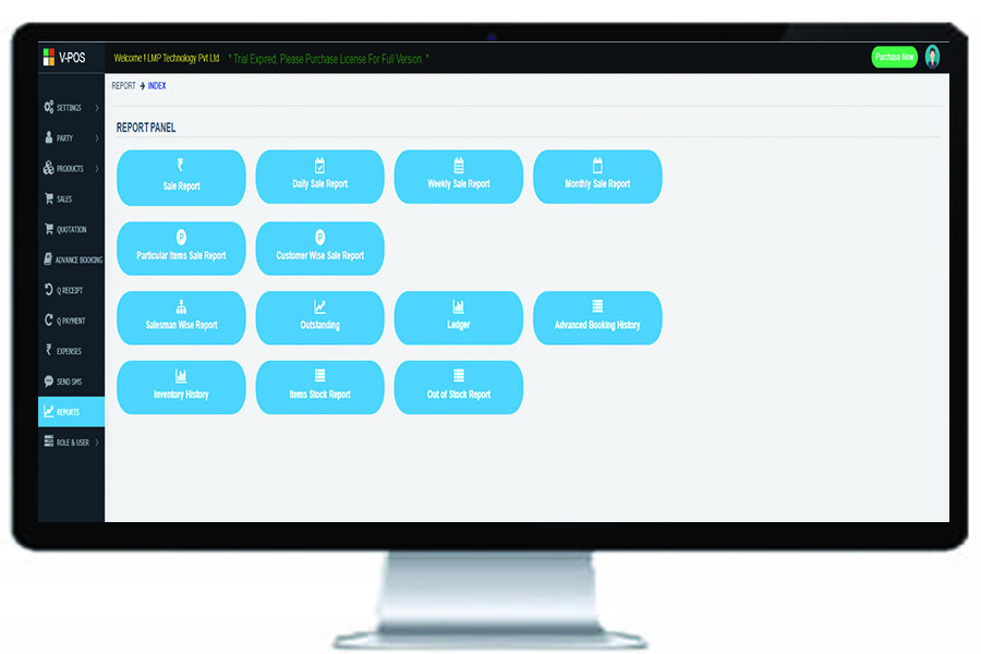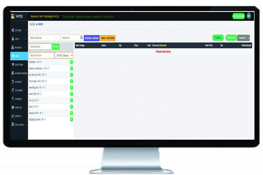 Virtual Point of Sale known as V-POS is a billing and inventory software which replace all the manual activities of a store such as items management , sales and purchase record, stock management, by specialised system which perform all the said activities in just a few click.